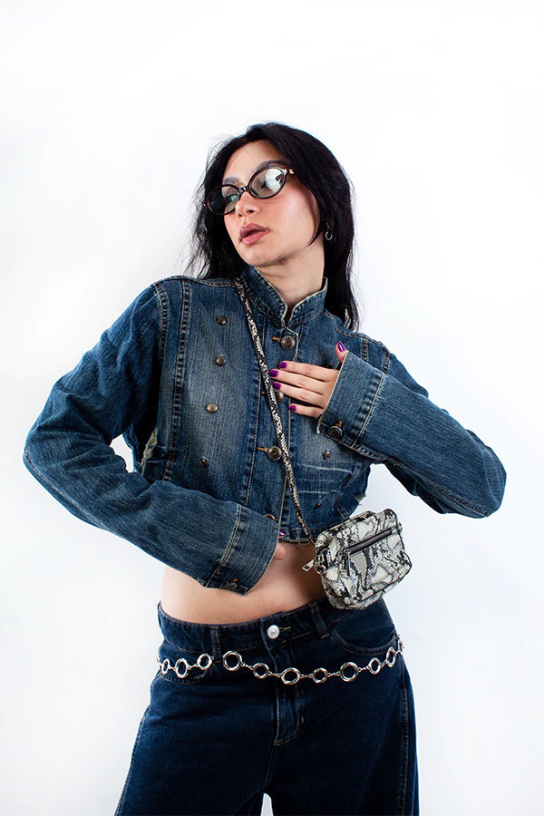 jaqueta jeans cropped lavagem escura estilo y2k