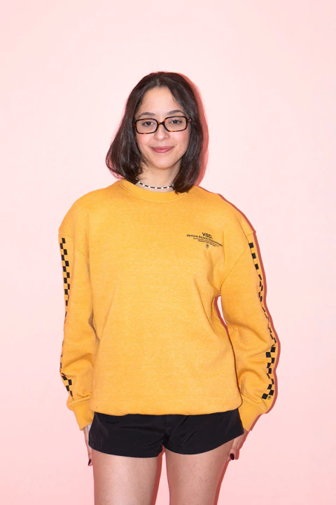 moletom mostarda com manga quadriculada